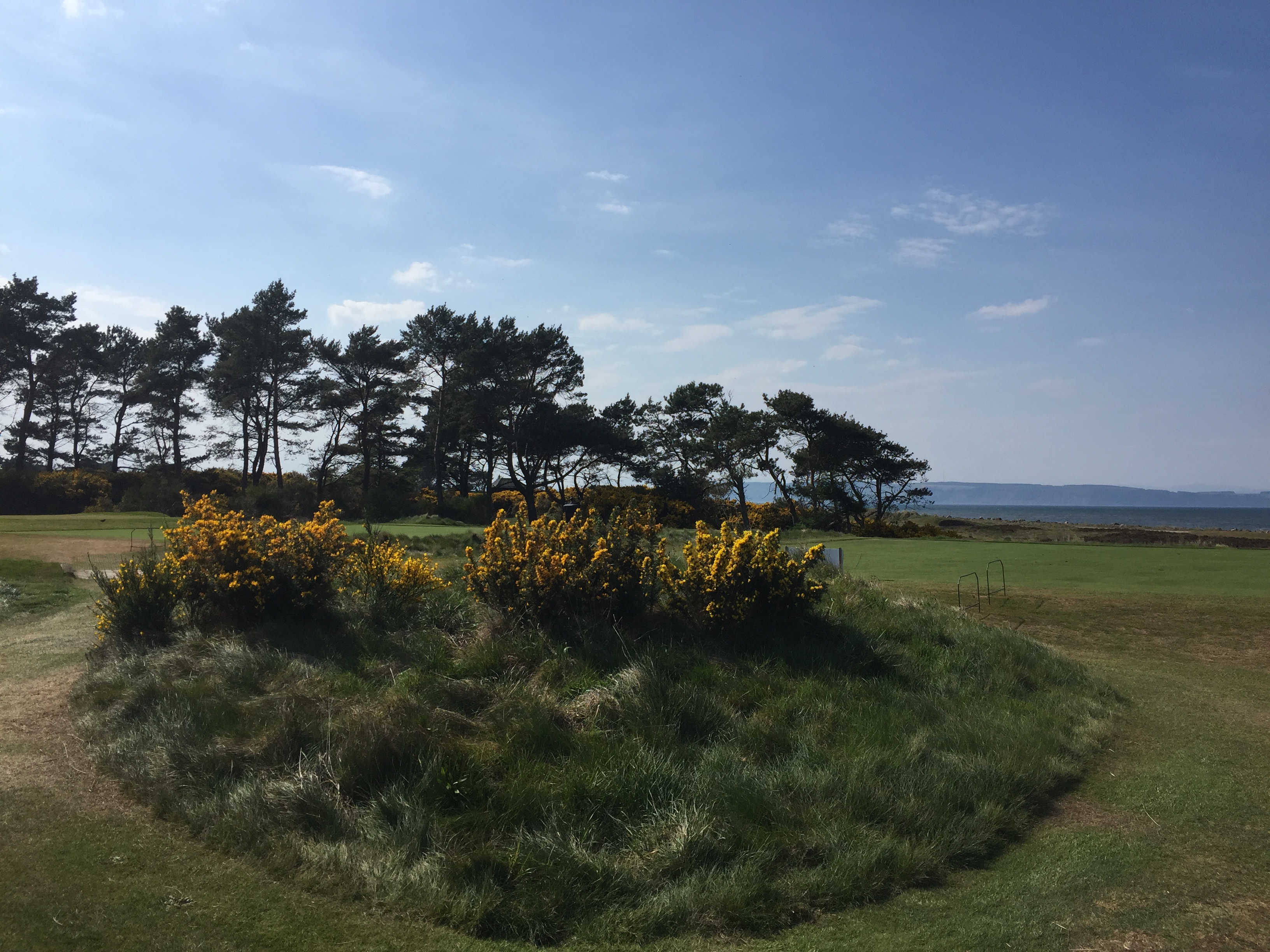 Zugegeben, es mag sehr einfach sein, sich in einen Golfplatz zu verlieben, wenn man ihn an einem warmen, sonnigen Tag bei gelb-blühendem Ginster spielt. Außerdem hatte ich aufgrund der vorhergehenden Tage die ich ausschließlich den Links von Brora, Dornoch, Wick und Golspie gewidmet hatte, ohnehin schon gut Laune. Doch andererseits fand ich den Platz nach meinem ersten Spaziergang gar nicht so attraktiv. Er schien relativ voll zu sein, das Clubhaus war mir ein wenig zu amerikanisch und insgesamt war ich nicht bereit, einen neuen Lieblingsplatz zu finden.