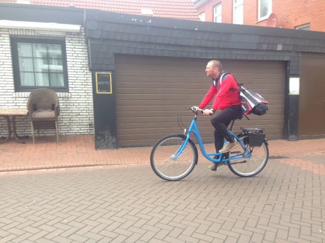 Die Runden auf Norderney waren für mich auch aus einem anderen Grund von Bedeutung. Seit einiger Zeit gehe ich mit der Idee schwanger, auf dem Fahrrad Schottland zu berreisen und dabei Golfschläger mitzuführen. Das Kind hat bereits einen Namen: Cycgo - Cycling & Golf! Da der Golfplatz auf Norderney bei allen Vorzügen eine kleinen Schönheitsfehler aufweist, nämlich seine Lage auf der Insel, die nicht unbedingt fußläufig zu den üblichen Übernachtungsmöglichkeiten liegt, wenn man nicht gerade dem Camping fröhnt, denn der entsprechende Platz liegt direkt gegenüber, war der Kurzurlaub hier eine blendende Gelegenheit, das Konzept Cycgo prototypisch zu erfahren (das Wortspiel ist zwar als solches erkannt, aber nur bedingt gewünscht). Ich mietete also eines der häufig zu sehenden blauen Leihfahrräder, schulterte mein kleines Golfgepäck und fuhr dem Spielplatz entgegen.