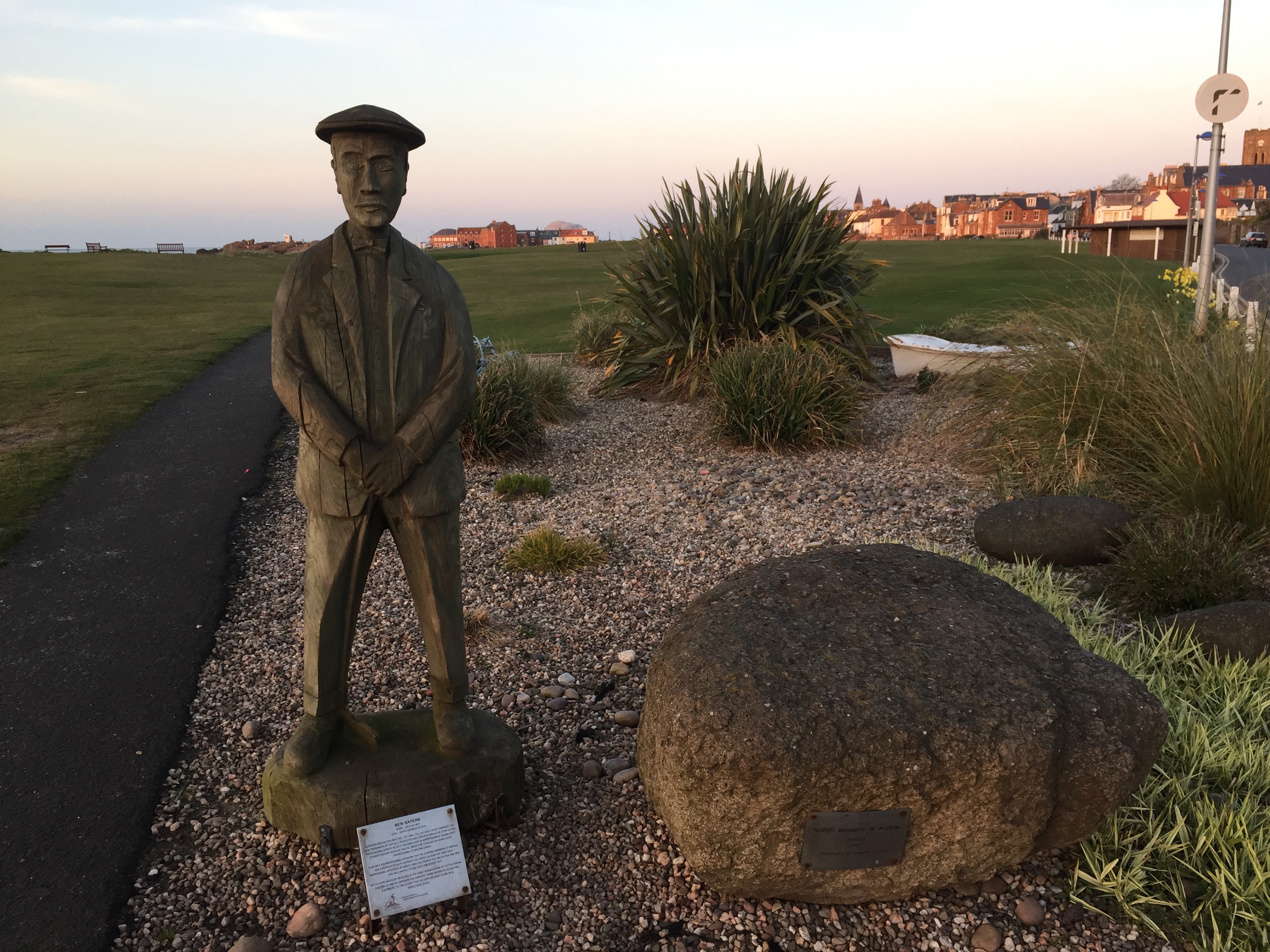 Da dieser an sich tolle Platz aber schon im letzten Mai noch nicht so richtig grün war und die Temperaturen in diesem April verhältnismäßig kalt waren, zudem in den höheren Lagen noch Schnee gefallen war, entschied ich mich doch dafür, lieber noch einen Tag nördlich von Inverness zu bleiben, um dann in einer längeren Fahrt Richtung Fähre zu reisen. Ich entschied mich für ein attraktives Paket des Golfclubs Tain, den ich von meiner letzten Reise schon kannte. Hier bot man ein Stay-And-Play in Zusammenarbeit mit dem Royal Hotel an. Dieses Hotel sah von außen äußerst stattlich aus. Beim Betreten des Zimmers hatte ich den Eindruck, dass die Queen vermutlich schon etwas länger nicht mehr hier war, denn ansonsten könnte ich mir die Royalität des Etablissements nicht erklären. Nun erinnere man sich aber an den Beginn der Reise: Besser als ein Auto war das Zimmer dann doch. Das Frühstück war auch so weit in Ordnung, der Kellner brillierte durch eine wunderbar gleichgültige Schlurfigkeit. Letztlich war aber auch eh alles nicht so wichtig, denn an meinem letzten Golftag wurde ich vom Wetter mal so richtig verwöhnt. Ein nahezu wolkenloser Himmel und es war sogar ziemlich warm. Ich spielte angenehm gedankenverloren vor mich hin, hatte ein gutes Körpergefühl und abgesehen von zwei weniger guten Schlägen spielte ich ganz ordentlich. Auf der 8 stockte das Spiel plötzlich. Das Paar vor mir fing an, deutlich langsamer zu spielen. Vor ihnen war ein 3-Ball ortsansässiger Seniorinnen, die offensichtlich ein Wettspiel spielten. Bereits vorher war mir aus der Entfernung aufgefallen, dass das Paar sehr zügiges, gutes Golf spielte. Ich freute mich also, als sie mich am Abschlag der 10 fragten, ob ich eventuell mitspielen wolle. Ich bejahte und stopfte noch rasch einen Putt aus 4 Metern mit einem ordentlichen Break. Und so sollte es dann weitergehen. Vor allem lag das aber an dem überaus netten Geplauder, dass sich zwischen uns Dreien entspann. Die Beiden kamen aus North Berwick und der männliche Mitspieler war Zeit seines Lebens Mitglied in Gullane. Auf dem Gelände dieses Clubs fand 2015 die Scottish Open statt. Er war gerade in den Vorruhestand gegangen und hatte vor Kurzem begonnen, als Caddie in seinem Heimatclub zu arbeiten. Nach der Runde saßen wir noch eine ganze Weile im Clubhaus beim Essen, wir schwatzten über Sport im Allgemeinen, Golf natürlich im Besonderen, über den hohen Wert von Coaching in neuen Arbeitssituationen und sogar Politik.